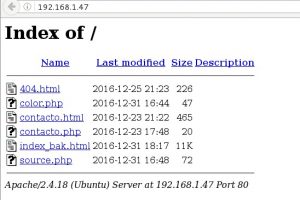 De manera predeterminada un servidor web Apache siempre buscará mostrar un archivo llamado «index.html» o «index.php» pero si dicho archivo -por alguna u otra razón- no se encuentra entonces se le mostrará al visitante -o atacante- los archivos y subdirectorios presentes, mirad un ejemplo: