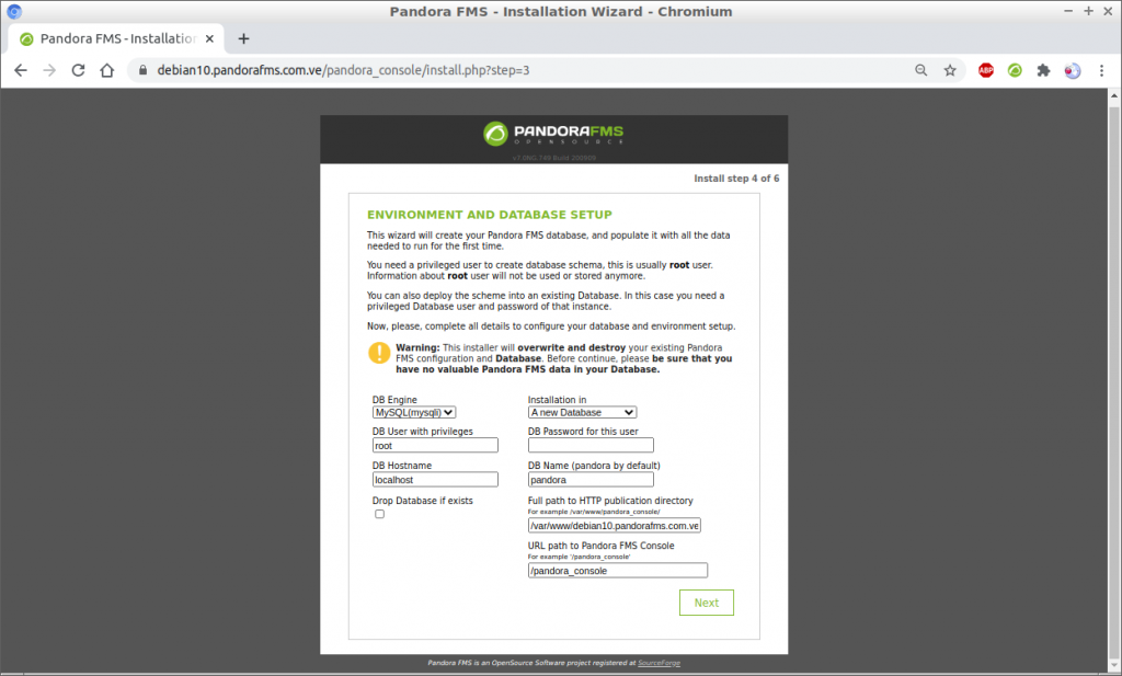 - 8 Inicio del asistente de instalación de Pandora FMS