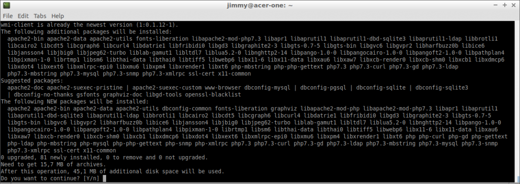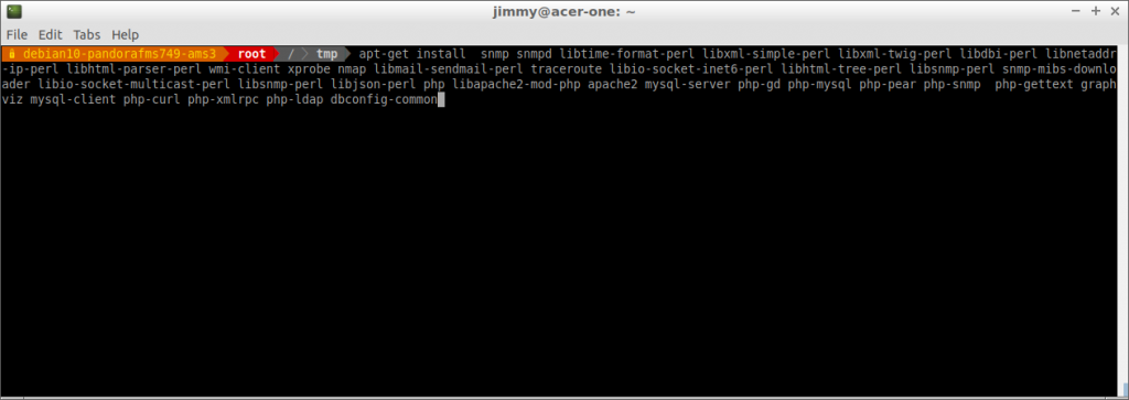 apt-get install snmp snmpd libtime-format-perl libxml-simple-perl libxml-twig-perl libdbi-perl libnetaddr-ip-perl libhtml-parser-perl wmi-client xprobe nmap libmail-sendmail-perl traceroute libio-socket-inet6-perl libhtml-tree-perl libsnmp-perl snmp-mibs-downloader libio-socket-multicast-perl libsnmp-perl libjson-perl php libapache2-mod-php apache2 mysql-server php-gd php-mysql php-pear php-snmp php-gettext graphviz mysql-client php-curl php-xmlrpc php-ldap dbconfig-common