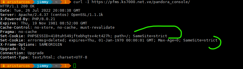 Dicho esto, vamos a configurar nuestro servidor PFMS para que envíe siempre las correspondientes cookies para que sean abiertas por el mismo origen, vean el antes y el después con ayuda de curl.
