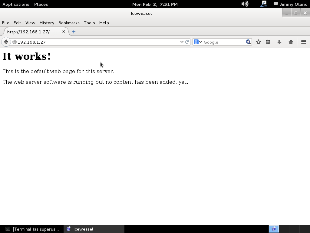 Ahora desde cualquier otra máquina en la misma red de área local (recordáis que les dije que anotaran ése valor) podemos proceder a verificar primero si el servidor web funciona: