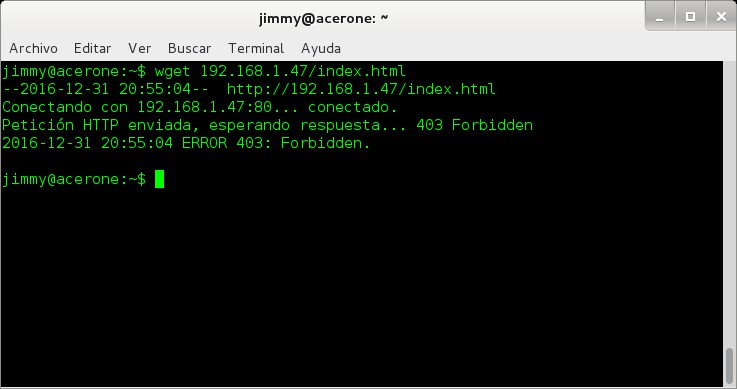 Así al faltar «index.html» no muestra ninguna página e intentará mostrar los archivos y subdirectorios opción la cual le eliminamos la visualización en el punto anterior.