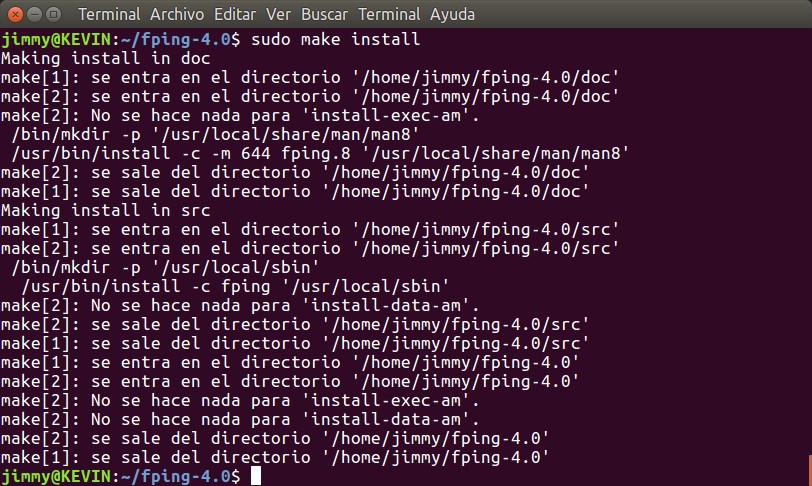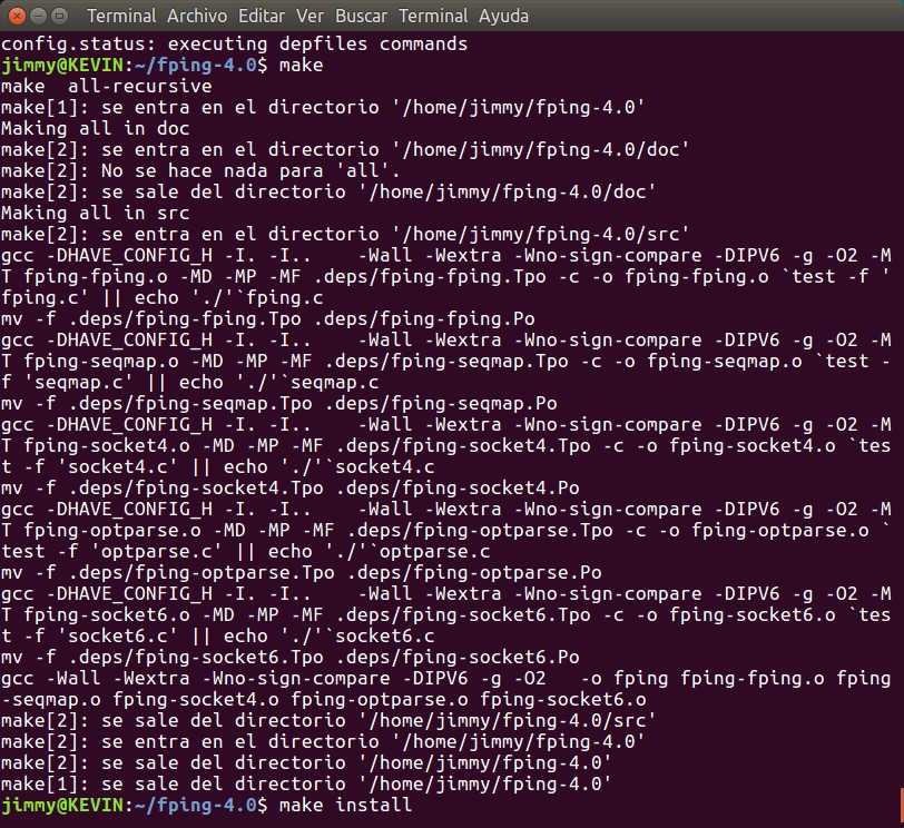 y repetimos los pasos que anteriormente vimos, pero con la ventaja de que si realizamos alguna mejora en el código fuente, y por medio del control de versiones, podremos proponerle a los encargados de fping.org el incorporarlo a la próxima versión de fping (atención: serán exigentes en el código que subamos, podrían negarse a agregarlo o incluso aceptarlo y mejorarlo así que salimos todos ganando).