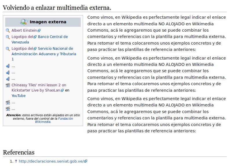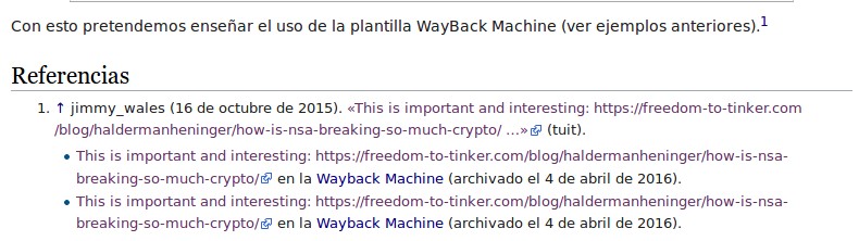 Esto quiere decir que toda afirmación que a bien tengamos incluir en el artículo debe tener su referencia respectiva la cual será mostrada casi al final del artículo bajo la sección «Referencias» y con la ayuda de una plantilla específica: