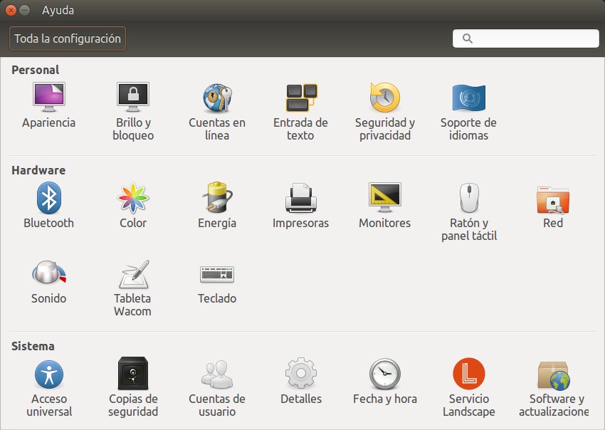Ahora vamos a ver a nivel de nuestras máquinas, que bien pueden ignorar los valores que nos «asigna» nuestro enrutador, y podremos colocar los otros DNS que recomendamos (si no nos importa perder un poco de nuestra privacidad): los de Google. En Ubuntu 16 vamos a «Inicio» y luego escogemos «Configuración del sistema»: