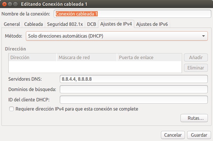 Cambiando los DNS en Ubuntu 16