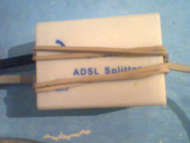 Los filtros de ruido también son conocidos como «splitter» porque literalmente dividen la conexión, aunque esa no es su función principal. En este ejemplo un muy mal diseño que no tiene cables fijos y quedan con juego o flojos LES COLOCAMOS LIGAS PARA MANTENERLOS SIEMPRE CONECTADOS.