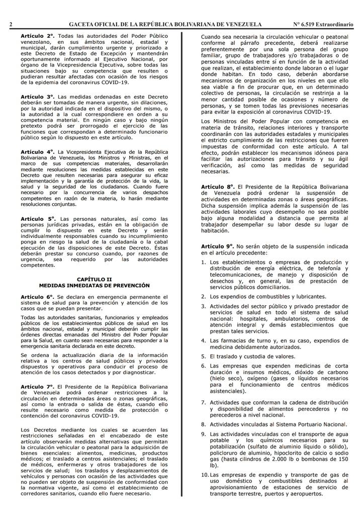 - 2 Decreto N.º 4.160, 13 de marzo de 2020