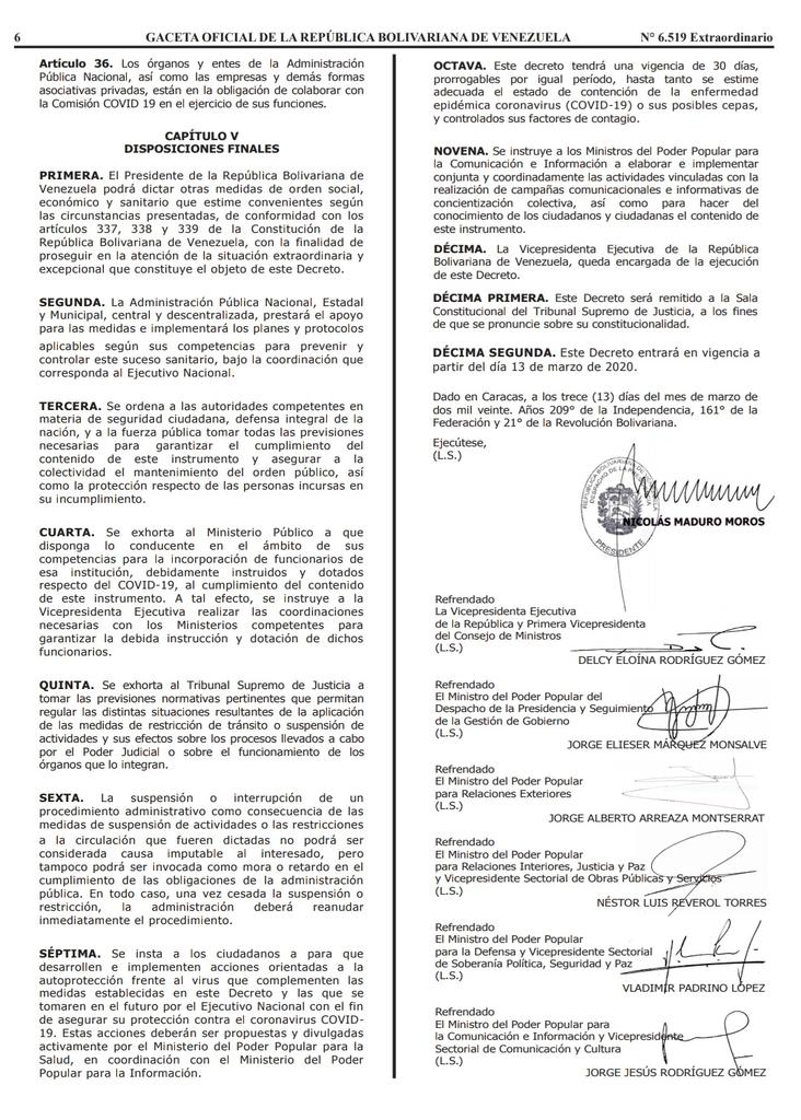 Dado en Caracas, a los trece (13) días del mes de marzo de dos mil veinte. Años 209° de la Independencia, 161° de la Federación y 21° de la Revolución Bolivariana.