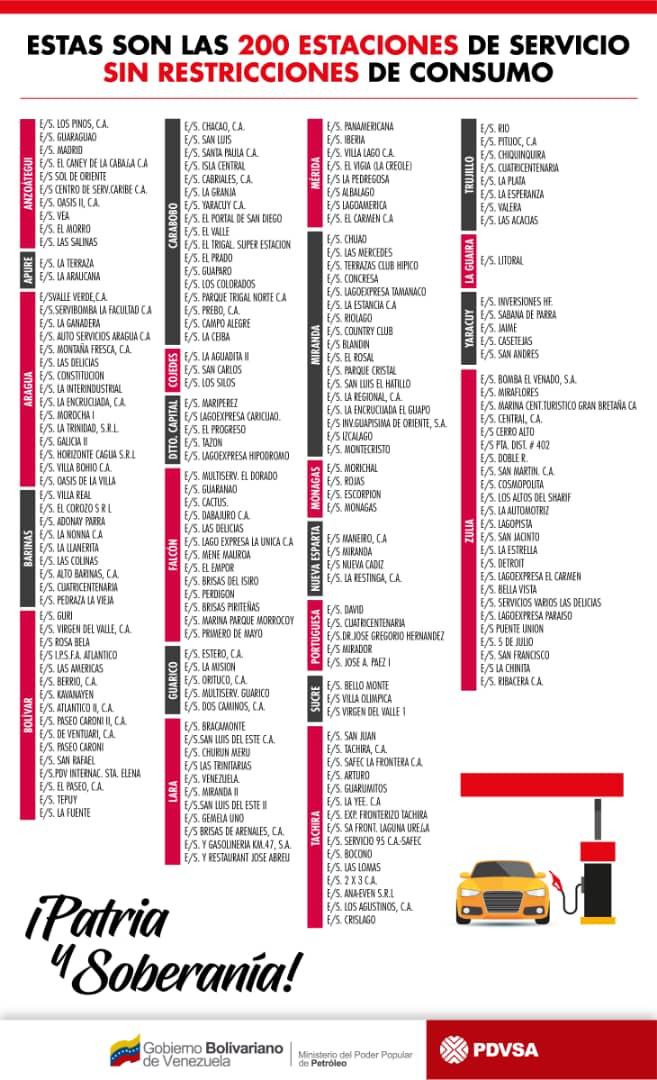 También informó que habrán 200 bombas de gasolina en todo el país, gestionadas por empresarios privados, que venderán exclusivamente gasolina premium a precios internacionales. Señaló que estos empresarios importarán el combustible por su cuenta.