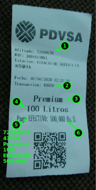 Hemos descifrado el código QR de una de estas ¿facturas? ¿facturas equivalentes? (ver imagen anterior) de los papeles que imprimen al pagar una compra de gasolina (la imagen de ejemplo la conseguimos en la red social Twitter).