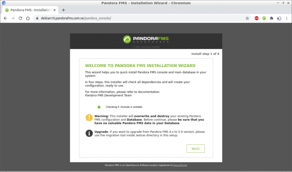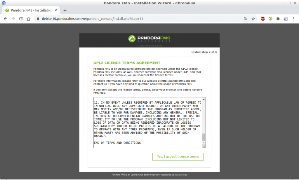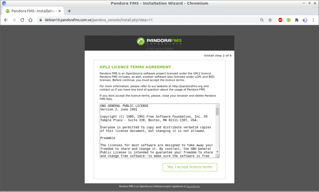 - 8 Inicio del asistente de instalación de Pandora FMS