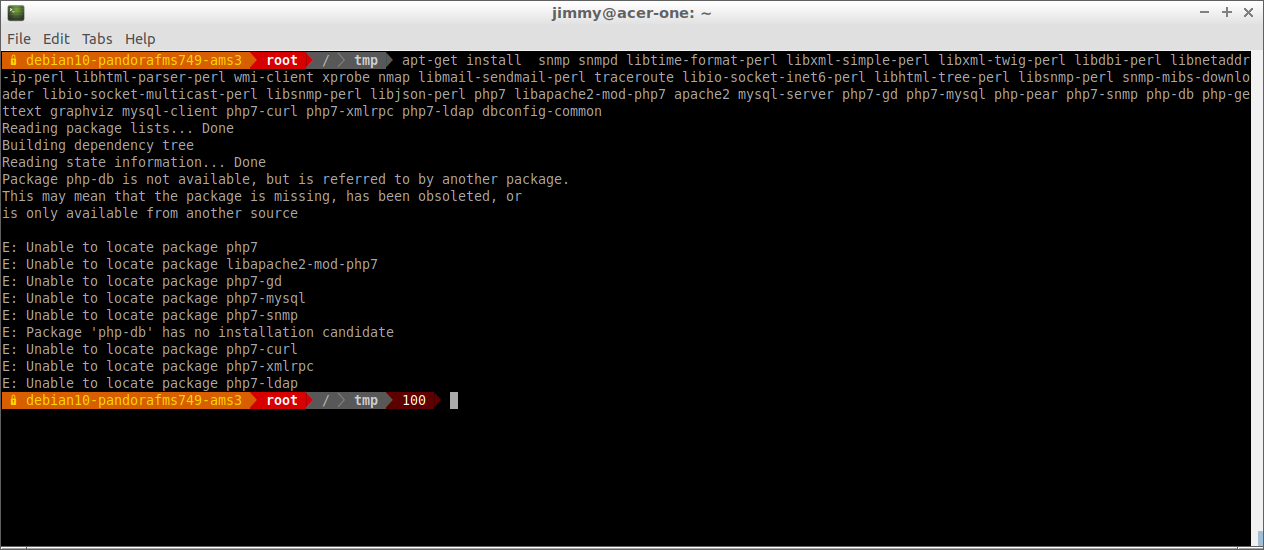 En un primer intento volví a repasar las dependencias del servidor junto con las dependencias de la consola pero sustituyendo php7 por php5 (sí, ya se lo que están pensando…); no me sorprende para nada que no haya funcionado lo de PHP, lo que no esperaba era que php-db no estuviera disponible.