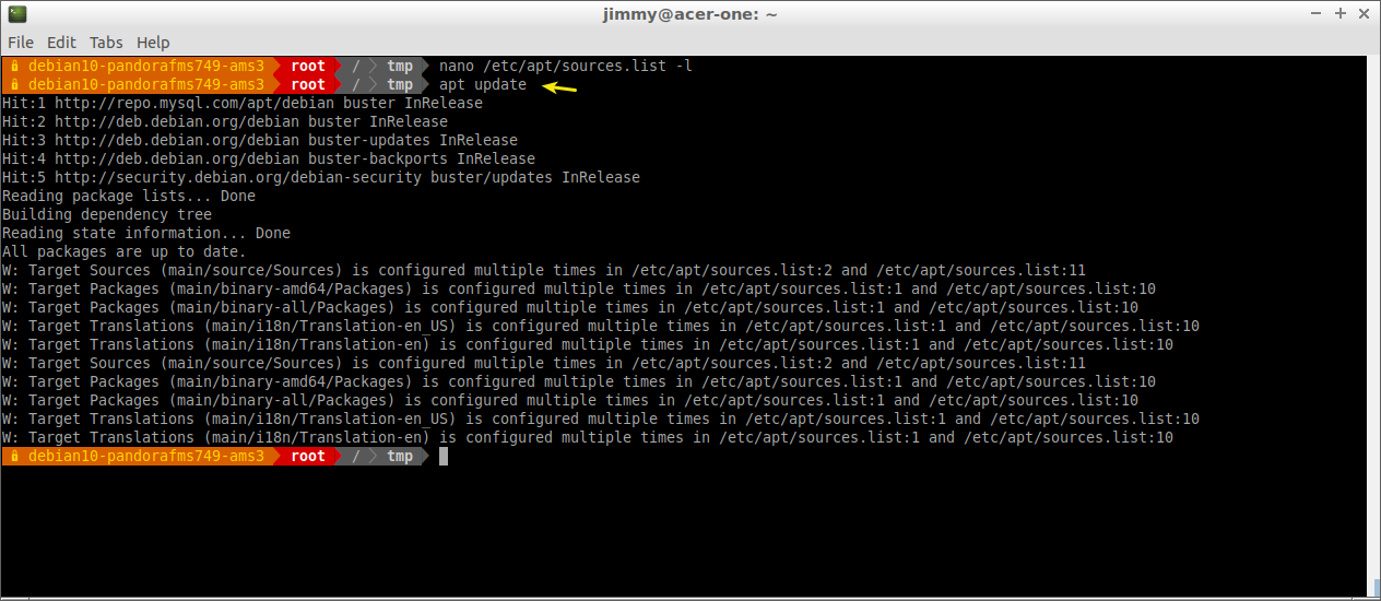 Lo anterior fue una actualización en sí de Debian con los repositorios que agregamos, acto seguido toca -por fin- comenzar a instalar Pandora FMS.