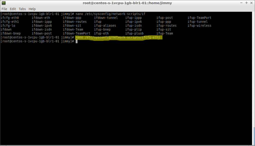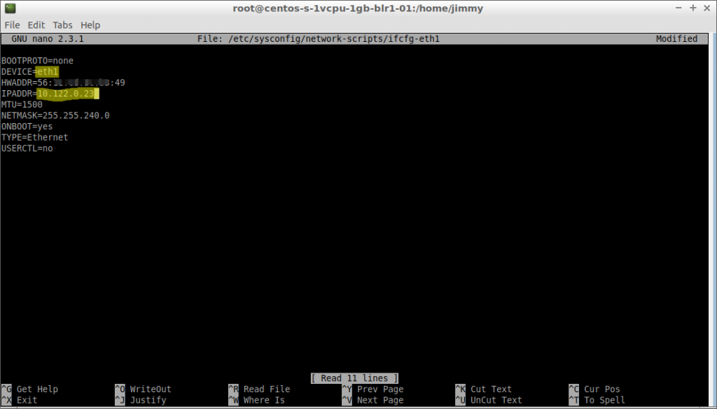 # nano /etc/sysconfig/network-scripts/ifcfg-eth1