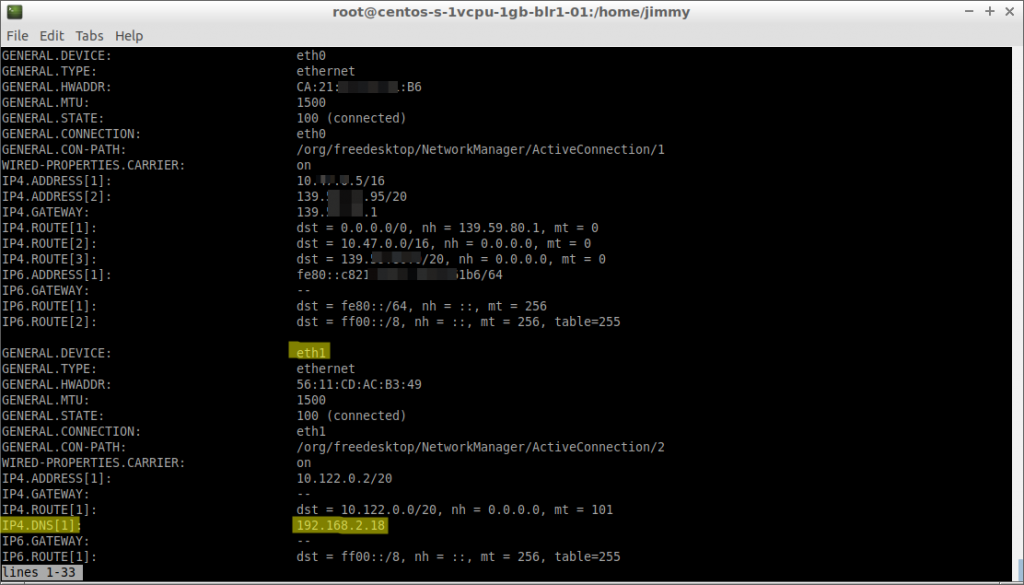nmcli con mod eth1 ipv4.dns "192.168.2.18"