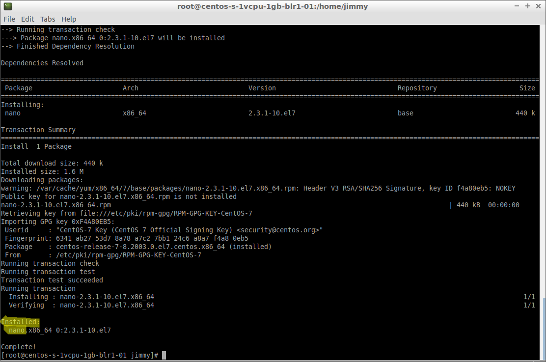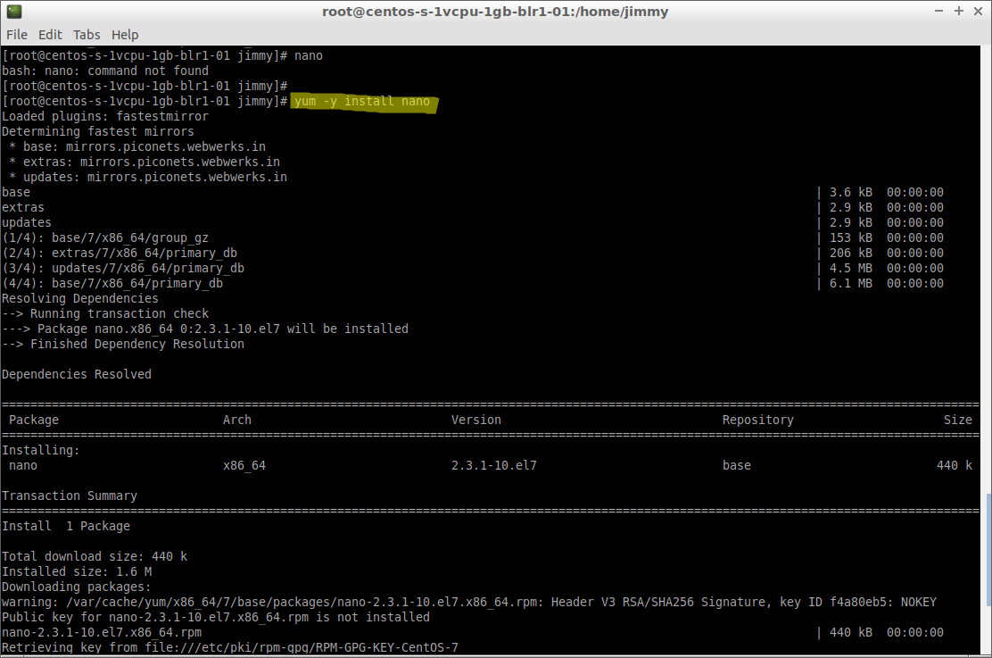 # yum -y install nano