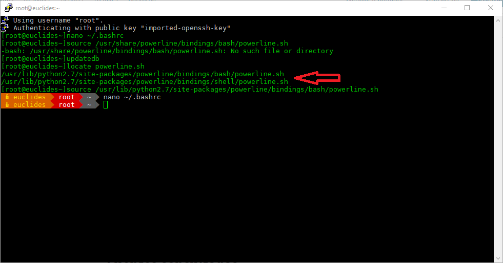 echo "source /usr/lib/python2.7/site-packages/powerline/bindings/bash/powerline.sh" >> .bashrc