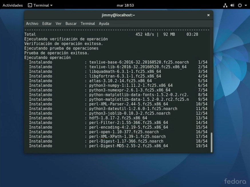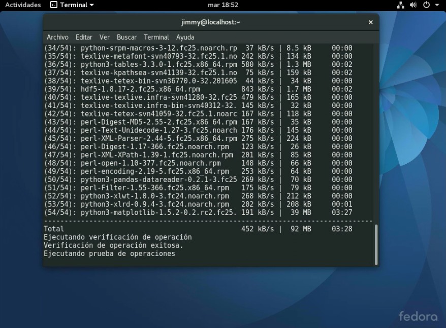 El comando DNF es la abreviatura para Dandified Yum, que tal como explicamos, es el equivalente al comando apt-get utilizado en las distribuciones GNU/Linux basadas en Debian. Así que autorizamos la descarga, que son más o menos 92 megabytes: