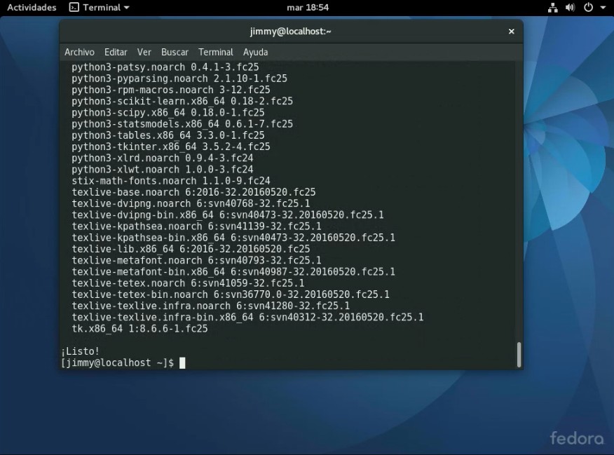 Todas ellas las podemos bien instalar en una sola línea, bien una por una, depende de nuestra paciencia. Por rapidez escogeremos la primera y en la misma ventana terminal que tenemos abierta colocamos: